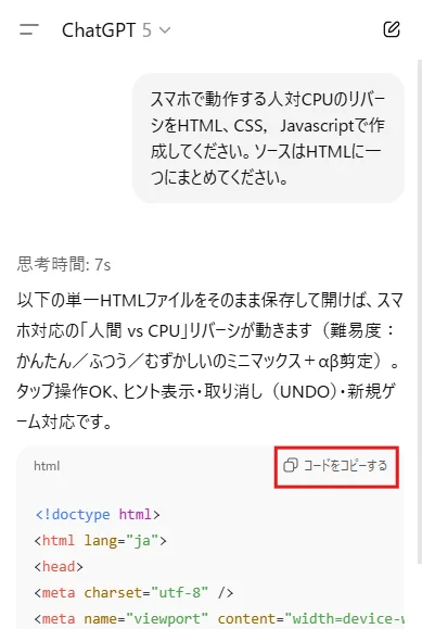 AIはエラーの原因を教えてくれるだけでなく、「こうすると良くなります」と修正版のコードまで提案してくれます。