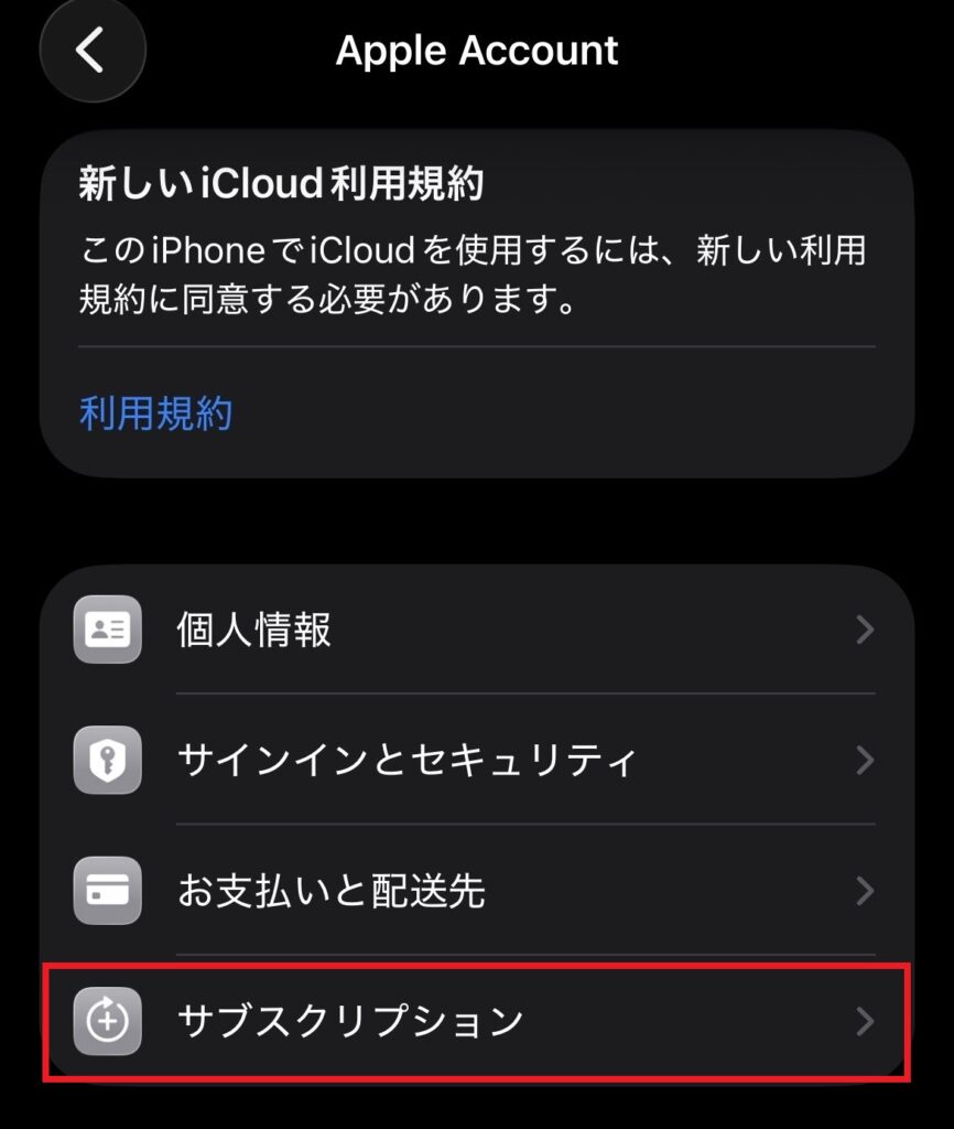 iPhoneユーザーも同様です。設定アプリから「サブスクリプション」を退会に行きます。