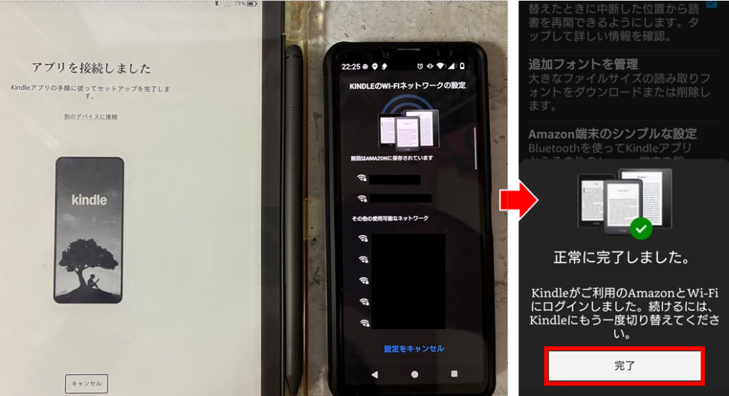 スマホ側に登録されているWi-Fiの設定をKindleScribe側にも行います。