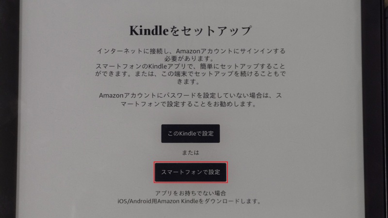 スマートフォンで設定を選びます。(※このKindleで設定でも問題ありません。)